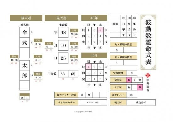※命式表ご注文の際には必ず